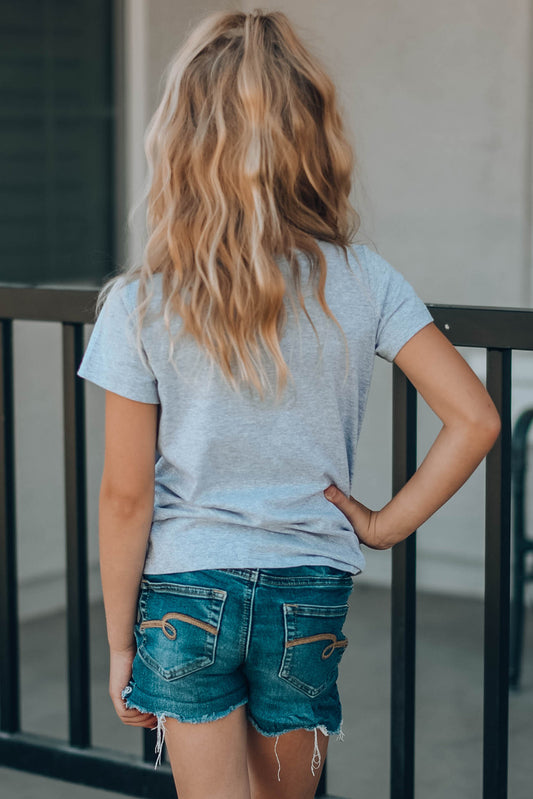 Girls Contrast Peter Pan Collar Short Sleeve Top