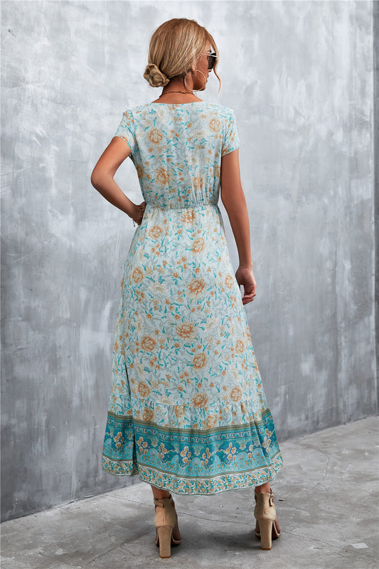 Bohemian V-Neck Short Sleeve Midi Dress